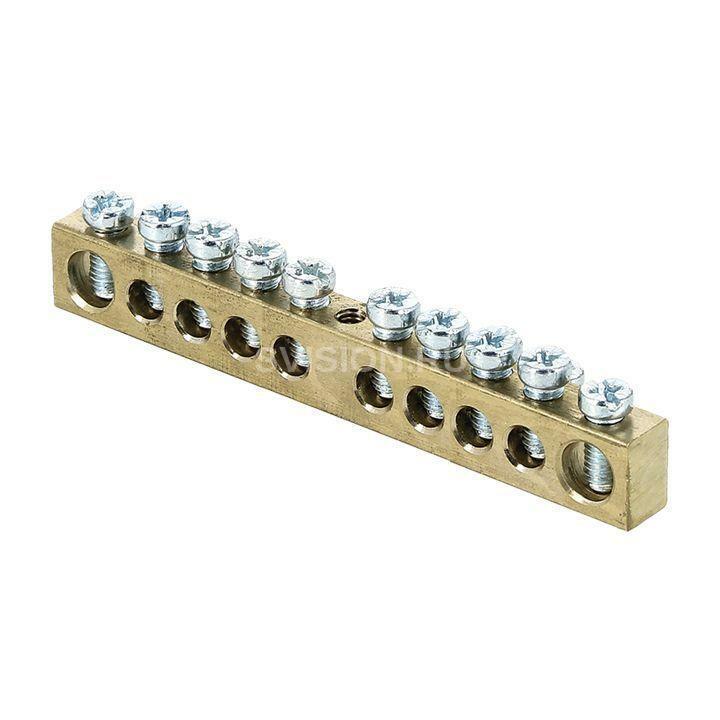 Описание Шина PEN "ноль-земля" 6х9 10 отвер. латунь крепеж по центру PROxima EKF sn0-63-10