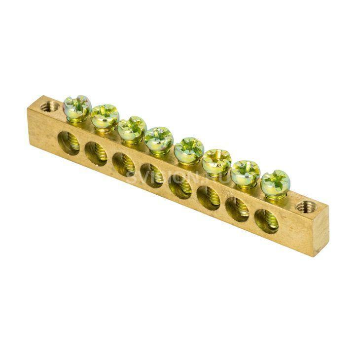 Описание Шина PEN "ноль-земля" 8х12 8 отвер. латунь крепеж по краям PROxima EKF sn0-125-8-k