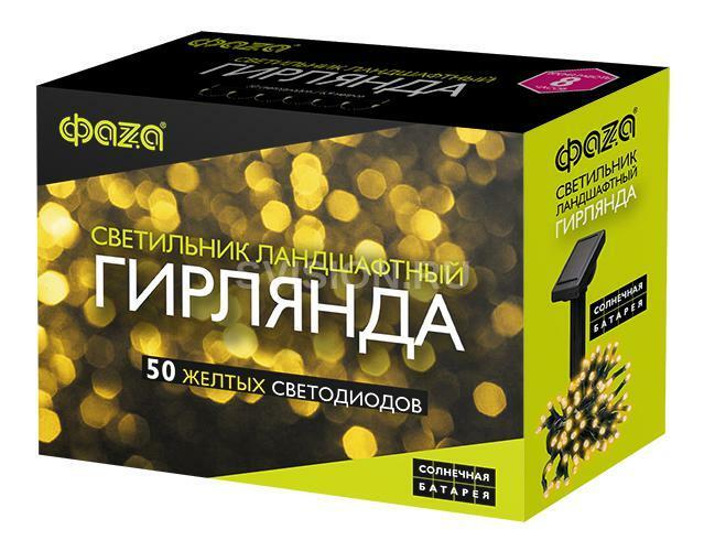 Описание Светильник светодиодный садовый SLR-G01- 50Y гирлянда 50 желт. LED на солнечн. батарее ФАZА 5027299