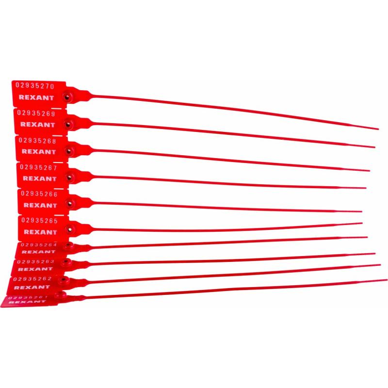 Пломба пластиковая, номерная, 255мм, зубчатая, красная REXANT (07-6121)