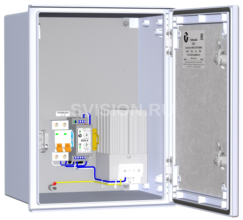 - Питание шкафа:напряжение питания Uпит ~220 B (+10 -15)%, 50 Гц;максимальный ток нагрузки 6 A;