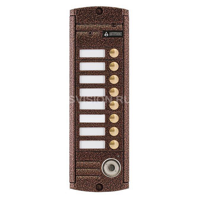 Вызывная цветная видеопанель со встроенным Touch Memory считывателем Activision AVP-458(PAL) TM (медь), антивандальная, 4-проводная. Модель выполнена в антивандальном сверхпрочном корпусе накладного типа и рассчитана на 8 абонентов. Для работы в составе 4-х проводного индивидуального видеодомофона, является его составной частью.