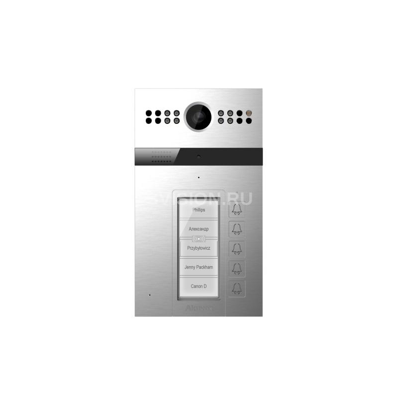 Вешать 5 отдельных вызывных панелей на дверь отсечки является не самым лучшим вариантом, как с точки зрения расходов, так и с точки зрения эстетики и удобства. Поэтому, Akuvox предлагает для застройщиков и интеграторов офисных пространств современную, стильно выглядящую и надежную вызывную панель на 5 абонентов.