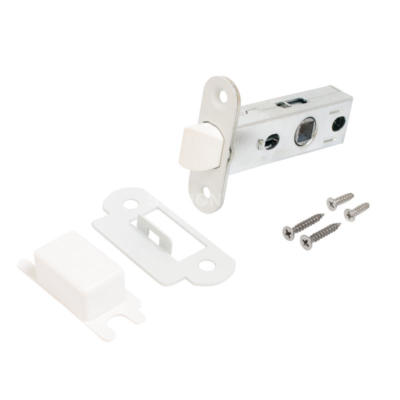 Универсальная защёлка врезная для установки на деревянные межкомнатные двери. Материал - сталь оцинкованная штампованная, гальваническое покрытие. Под ручку с квадратом 8 мм. Удаление ключевого отверстия - 45 мм. Овальная торцевая планка для возможности установки электроинструментом. Ширина планки - 18мм. Габариты корпуса - 72.5х22х15 мм. В комплекте - защелка, ответная планка и белый пластиковый вкладыш к ней, саморезы. Пластиковый узел защелки для бесшумной работы.