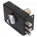 Замок накладной цилиндровый с вертушкой. Предназначен для установки на деревянные двери. Засов из трех цилиндрических ригелей диаметром 12 мм, с максимальным вылетом 22 мм. Удаление ключевого отверстия - 50 мм. Габариты замка - 86х77х25 мм. Комплектация - 5 ключей, запорная планка, накладка. Механизм замка под англ.ключ, идет совместно с корпусом. Закрывание и открывание замка изнутри производится вертушкой, снаружи ключом. Совместим по посадочным местам с замками 556, LT 556