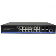 12-портовый управляемый 100/1000 Мбит/с настольный/монтируемый в стойку коммутатор с PoE до 150Вт.