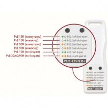 Особенности Быстрый тест RJ-45 коннектора на наличие питания PoE Эффективная диагностика неполадок с PoE 2 светодиодных индикатора для определения типа питания Совместимость с оборудованием PoE, PoE+ (High PoE), PoE++ (Ultra PoE) Определение всех типов IEEE 802.3af/at/bt PoE устройств Проверка мощности PoE для правильного подключения оборудования Определение пар, по которым подаётся питание PoE (2-pair PoE/4-pair PoE) Определение режима работы PSE (mid-span/end-span) Компактный размер