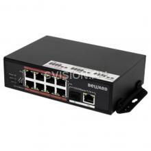 VLAN режим. PoE порты становятся изолированными друг от друга, разрешая соединения только с устройствами, подключенными к портам Uplink. CCTV режим. Увеличивается максимальное расстояние передачи Ethernet и питания по PoE портам до 250 метров, снижая скорость портов до 10 Мбит\с. PoE watchdog. Функция мониторит сетевую активность между портами. При пропадании сетевой активности на порту, к которому подключено PoE-устройство, коммутатор перезагрузит это зависшее устройство сбросив питание на данном порту. Особенности Промышленное исполнение, работа от -30 до +65°С В комплекте поставки крепления на стену и на DIN-рейку Соответствует стандартам IEEE 802.3af/at Power over Ethernet End-Span PSE PoE watchdog, VLAN и CCTV режимы 8 портов RJ-45 с поддержкой High PoE (30 Вт) 2 независимых гигабитных uplink порта: 1 SFP + 1 RJ-45 PoE бюджет 115 Вт с комплектным блоком питания Управление потоком IEEE 802.3x для защиты от потери пакетов Пассивное охлаждение за счет конвекции, не требует вентиляторов, бесшумная работа Промышленное исполнение