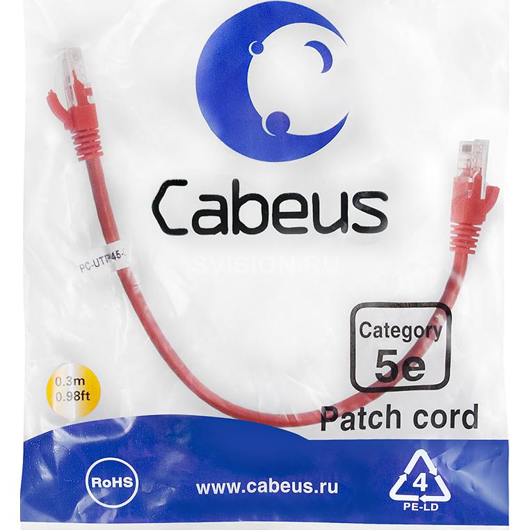 Cabeus PC-UTP-RJ45-Cat.5e-0.3m-RD Патч-корд U/UTP, категория 5е, 2xRJ45/8p8c, неэкранированный, красный, PVC, 0.3м