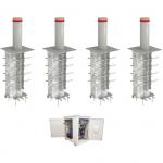 В комплекте: 5 боллардов, шкаф управления с рукавом высокого давления 10 метров, межблочными рукавами 1,2 метра и клапаном аварийного опускания преграды.