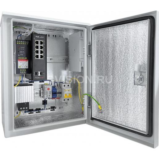 Свободное пространство, место на DiN-рейке и глубина 220мм сделают установку дополнительного оборудования более практичной, а теплоизоляция и обогрев внутреннего пространства будут поддерживать работу этого оборудования при температуре окружающей среды до -60°С.