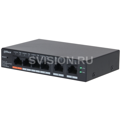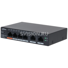 6-портовый настольный коммутатор с облачным управлением и 4 портами PoE. Порты: 4 RJ45 10/100Мбит/с (PoE/PoE+/Hi-PoE), 2 RJ45 10/100/1000Мбит/с (uplink); мощность PoE: порт 1 до 60Вт, порты 2~4 до 30Вт, суммарно до 60Вт; PoE watchdog, передача до 250м; питание: 53В(DC)