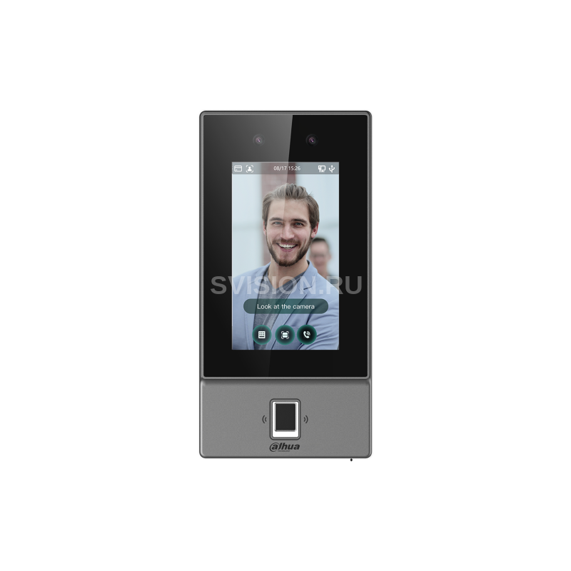 4.3'' cенсорный ЖК-дисплей с разрешением 272×480 Двойная широкоугольная видеокамера 2 Мп, ИК-подсветка и DWDR Аутентификация пользователя по отпечатку пальца, лицу, смарт-карте и паролю Максимальная емкость памяти на 6 000 пользователей, 6 000 лиц, 6 000 паролей и 6 000 отпечатков пальцев, 10 000 карт, 50 администраторов и 300 000 записей журнала Распознавание лиц на расстоянии от 0.3 м до 1.5 м; вероятность распознавания лица 99.9%, время распознавания лица 0.2 с при сравнении 1:N Повышенный уровень безопасности устройство и защита от вскрытия, поддерживается дополнительный модуль расширения Детектор медицинской маски и детектор каски Поддерживается считывание QR-кода посетителя и функция дверного звонка Поддерживает видеовызовы и получение тревожных сообщений в мобильном приложении, дистанционного открытия дверей и выполнения других задач Поддержка TCP/IP и Wi-Fi Питание PoE Класс защиты IP65