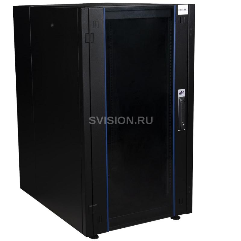 DR-700111Шкаф напольный 19", 22U 600х800, передняя дверь стекло, задняя стенка металл, черный