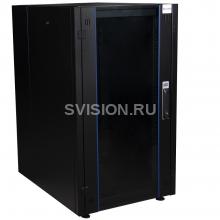 DR-700211Шкаф напольный 19", 26U 600х800, передняя дверь стекло, задняя стенка металл, черный