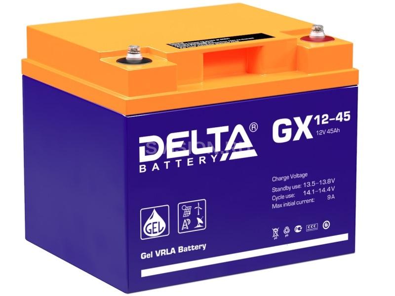 Герметизированный VRLA cвинцово-кислотный аккумулятор Delta GX 12-45 напряжением 12В и емкостью 45Ач изготовлен по технологии GEL (композитный гель вместо электролита). Устойчив к глубоким разрядам. Корпус изготовлен из негорючего ABS пластика. Срок службы аккумулятора достигает 15 лет. Аккумулятор предназначен для работы в режиме постоянного подзаряда (буферный режим) или в режиме разряд-заряд (циклический режим). Обладает низким внутренним сопротивлением и саморазрядом. Дополнительно к аккумулятору у нас можно подобрать зарядное устройство для него, батарейный шкаф или стеллаж.
