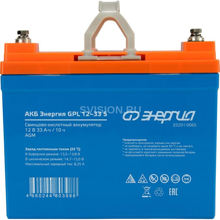 Аккумуляторные батареи АКБ Энергия GPL 12–33 S изготовлены по технологии AGM и предназначены для эксплуатации в буферном режиме в устройствах бесперебойного электропитания устройств охранной и пожарной сигнализации, информационных и телекоммуникационных систем и других типов оборудования, при работе которых не допускается перерывов в электропитании. Расчетный срок службы* аккумуляторной батареи – 12 лет при соблюдении правил эксплуатации. Продукция соответствует требованиям ГОСТ 12.2.007.12, ГОСТ 6851 пп.2.2.3, 2.2.4, 2.2.7, 2.2.8.