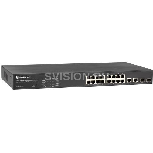 EverFocus ES1625-31 - коммутатор имеет 16 10/100 Мбит/с RJ-45 портов и может поддерживать 2 комбинированных порта Gigabit RJ-45/SFP для uplink. Этот web smart коммутатор поддерживает auto MDI/MDIX кроссовера функция обнаружения. 16 из этих портов построены функции PoE, обеспечивая лучший выбор на гибкость сети. Данный коммутатор является идеальным решением для создания беспроводной связи, IP-видеонаблюдение и VoIP сетей.