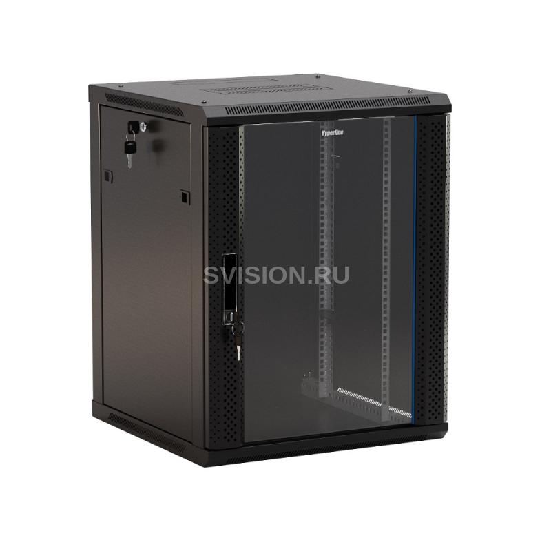 Hyperline TWB-0945-GP-RAL9004 - шкаф настенный 19-дюймовый (19"). Размеры: 9U, 500x600х450мм, стеклянная дверь с перфорацией по бокам, ручка с замком, цвет черный (RAL 9004) (разобранный). Особенности шкафов серии TWB - Обеспечивает монтаж оборудования по стандарту 19" - Используется для настенного монтажа внутри помещений - Ввод кабелей возможен через нижнюю и верхнюю панели - В верхней панели можно установить вентиляторный модуль - Предусмотрены легкоудаляемые (выламываемые) заглушки для установки панелей с кабельными вводами и вентилятора - Две модификации дверцы шкафа – стеклянная или сплошная металлическая - Дверь оснащена цилиндрическим замком - Возможна левосторонняя или правосторонняя навеска двери - Удобное открывание передней двери под углом более 180° - Съемные боковые панели на двух защелках и с замком - В комплект входит один щеточный кабельный ввод - Имеется две пары (4 шт.) 19" монтажных профилей - Монтажные уголки для поддержки оборудования - Сборная конструкция, простой и быстрый монтаж - Поставка в разобранном виде в плоской упаковке Новая конструкция крыши Предусмотрены легкоудаляемые (выламываемые) заглушки для установки панелей для ввода кабелей и вентиляторного модуля Два варианта исполнения двери Стеклянная передняя дверь (GP) обеспечивает удобный обзор установленного оборудования Сплошная металлическая дверь (SR) защищает от несанкционированного доступа и механических повреждений Универсальные размеры отверстий При необходимости вместо вентилятора в верхней панели можно установить два щеточных кабельных ввода Щеточный кабельный ввод Стандартной комплектацией предусмотрен один щеточ¬ный кабельный ввод – для установки на выбор в верхнюю или нижнюю панель Удобное подключение заземления Вместо винтовых соединений заземление подключается при помощи разъемных соединителей, которые очень удобно отключать и подключать во время установки и обслуживания оборудования Монтажные и горизонтальные профили В комплект входит две пары (4 шт.) вертикальных направляющих (19" монтажных профилей), положение которых можно регулировать по глубине внутри шкафа для установки различного сетевого оборудования и полок Предусмотрены также горизонтальные профили (опорные уголки) для фиксации пучков кабелей или поддержки оборудования, установленного в шкафу Сборно-разборная конструкция Поставка в разобранном виде в двух плоских картонных коробках Простая и быстрая сборка одним человеком за 10-20 минут Совместимые аксессуары К новой серии TWB подходят аксессуары от шкафов TWFS, такие как полки, вертикальные и горизонтальные профили