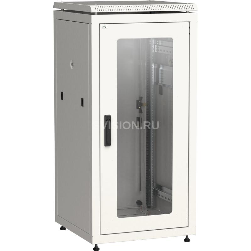 Шкаф сетевой напольный 19" LINEA N 28U 600х800мм, стеклянная передняя дверь, задняя металлическая, серый.