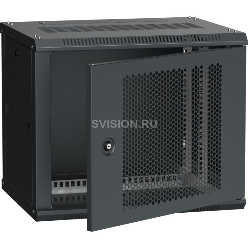 Шкаф настенный LINEA W 9U 600х450мм, дверь перфорированная, RAL 9005.