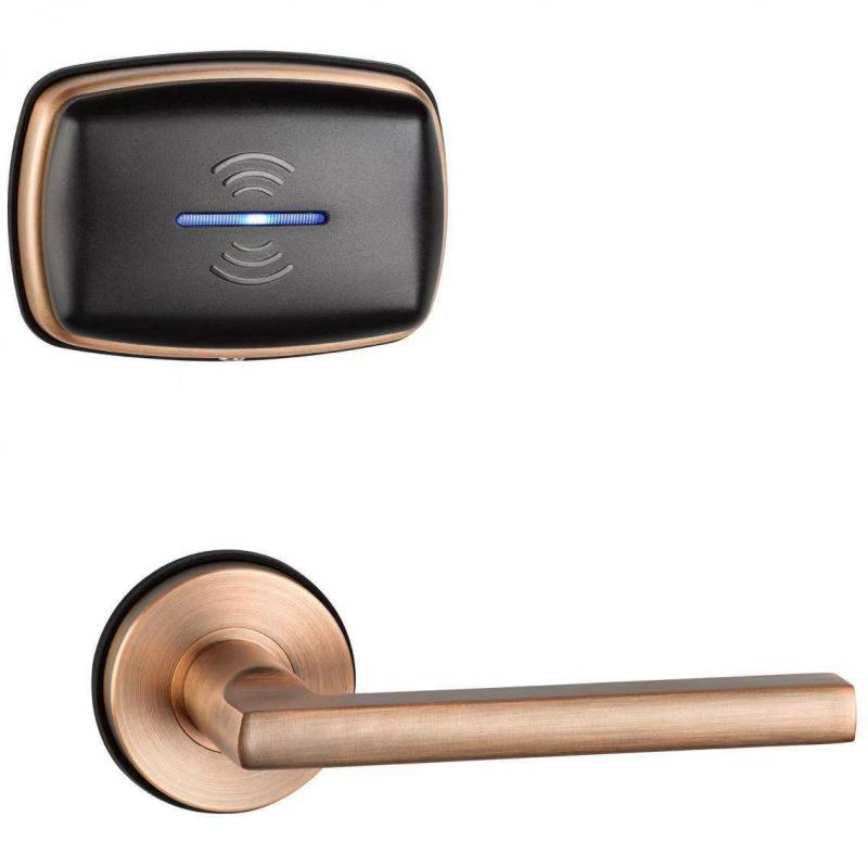 Раздельный дизайн замка. Питание - 6В (4 батарейки типа ААА). Материал корпуса - сталь AISI 304. Цвет - античная медь, способ нанесения покрытия - PVD. Материал врезного механизма - сталь AISI 304. Считыватель - Mifare. Сертификат соответствия ГОСТ Р.IS100 – одна из наиболее популярных моделей электронных замков , которая запоминается современным дизайном и продуманностью каждой детали . Изюминка этого замка кроется в монументальности форм и износостойкой поверхности, обработанной посредством PVD-технологии. Дверная ручка и считыватель карт независимы между собой, что позволяет экспериментировать во время их размещения на двери.