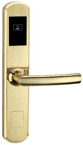 Электронный замок. Питание - 6В (4 батарейки типа АА). Материал корпуса - сталь AISI 304. Цвет - золото, способ нанесения покрытия - PVD. Материал врезного механизма - сталь AISI 304. Усиливающее кольцо в основании ручки. Считыватель - Mifare. Возможность нанесения логотипа отеля на шильдике. Сертификат соответствия ГОСТ Р. Сертификат противопожарной безопасности.Замок IS200- имеет монолитный корпус с дополнительной защитой от вандальных действий. Инновационная конструкция дверной ручки с дополнительным усилением и возможностью свободного хода – залог того, что замок прослужит долгие годы.
