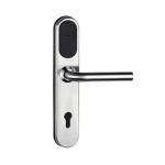Электронный замок. Питание - 6В (4 батарейки типа АА). Материал корпуса - сталь AISI 304. Цвет - черный, способ нанесения покрытия - PVD. Материал врезного механизма - сталь AISI 304. Считыватель - Mifare. Возможность нанесения логотипа отеля на шильдике. Сертификат соответствия ГОСТ Р. Сертификат противопожарной безопасности.