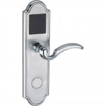 Электронный замок. Питание - 6В (4 батарейки типа АА). Материал корпуса - цинковый сплав. Цвет - серебро, способ нанесения покрытия - PVD. Материал врезного механизма - сталь AISI 304. Считыватель - Mifare. Возможность нанесение логотипя отеля на шильдике. Сертификат соответствия ГОСТ Р.