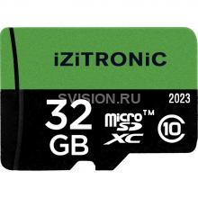 IZITRONIC Карта памяти microSDXC 32GB - карта памяти microSDXC со скоростью записи до 20Мб/сек и скоростью чтения до 25 Мбит/с. Класс скорости - 10. Поставляется без адаптера.