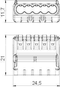 Количество зажимов, клемм: 5Номинальное напряжение: 600ВПодходит для гибкого провод(ник)а: ДаПодходит для однопроволочных проводников: ДаПодходит для многопроволочных проводников: ДаЦвет: ПрозрачныйС рычагом управления: ДаНоминальное поперечное сечение: .2...2.5кв.ммНоминальный ток: 24А