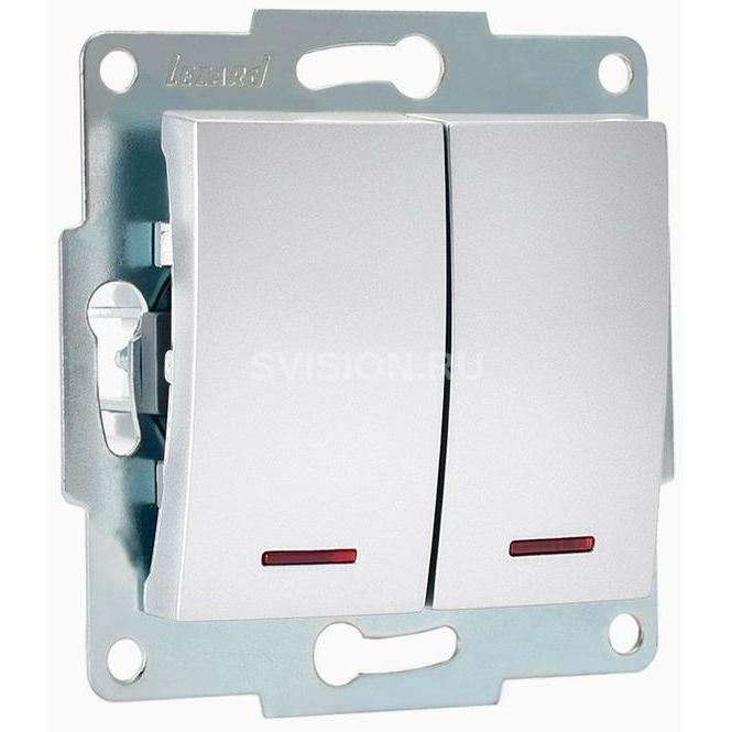 Описание Механизм выключателя 2-кл. 1п СП Karina 10А IP20 с подсветкой матов. серебр. LEZARD 707-4388-112