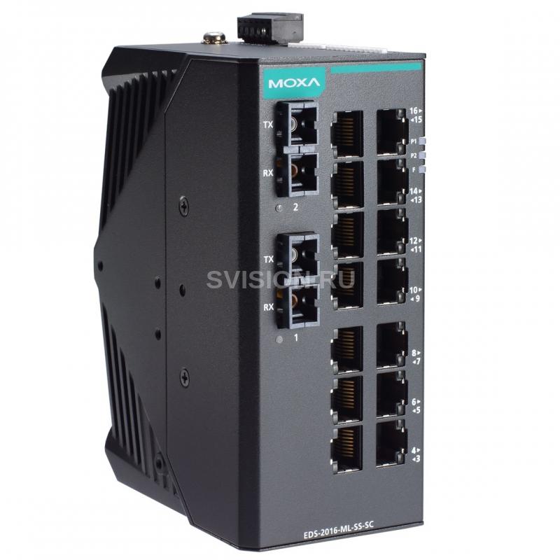 MOXA EDS-2016-ML-SS-SC - неуправляемый коммутатор 14 x 10/100BaseT(X), 2 x 100BaseFX (одномодовое оптоволокно).