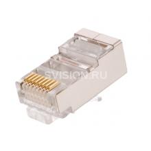 Коннектор NETLAN RJ45/8P8C под витую пару, Кат.5e (Класс D), 100МГц, покрытие 3мкд, универсальные ножи, для проводников 0,47-0,51мм, экранированный, уп-ка 100шт. Коннекторы предназначены для оконцевания одножильных и многожильных 4-х парных кабелей связи, также может использоваться для оконцевания 2-х парных кабелей обоих типов проводников. Коннектор выполнен в экранированном исполнении и соответствует категории 5e. Корпус коннектора изготавливается из поликарбоната, соответствующего стандарту UL 94-V2. EC-UP8P8C-SD-003-TR-100 поставляются в индивидуальных упаковках по 100 штук.