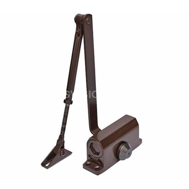 Доводчик дверной для двери весом до 65 кг. Максимальная ширина дверного полотна 1500 мм. При необходимости доводчик можно устанавливать как на правые, так и на левые двери. Рабочая температура от -40°С до +60°С. Цвет: Коричневый.