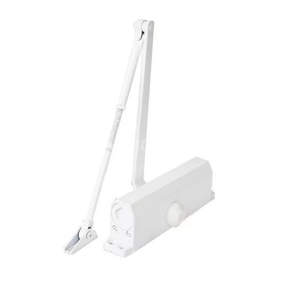 Доводчик дверной для двери весом 85 кг. Ширина дверного полотна не должна превышать 1500 мм. При необходимости доводчик можно устанавливать как на правые, так и на левые двери. Рабочая температура от -40°С до +60°С. Цвет: белый.