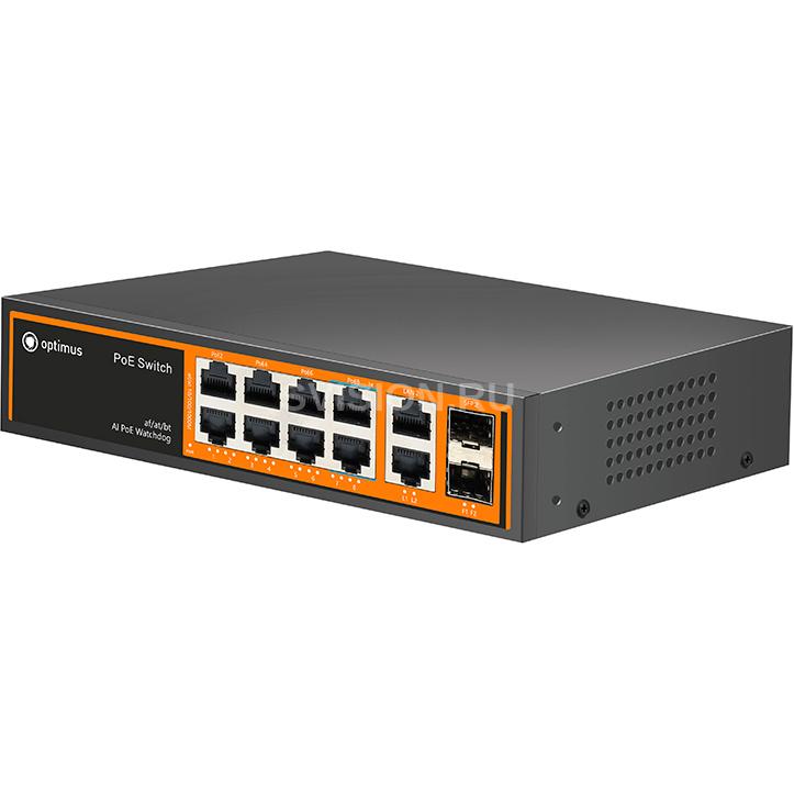 Коммутатор Optimus U1I-8G2b/2G/2S - неуправляемый PoE-коммутатор. Оснащен портами 10/100/1000 Мбит/с с поддержкой PoE (технология передачи питания по сетевому кабелю вместе с данными) к каждому из которых можно подключать сетевые устройства (IP-камеры, IP-телефоны, беспроводные точки доступа).