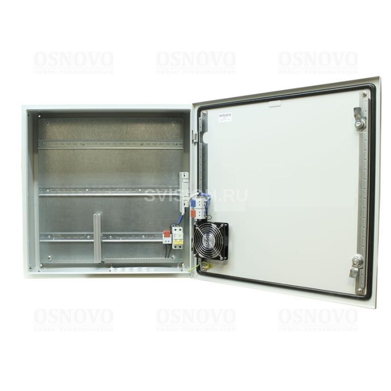 OSNOVO OS-66T1 - уличная станция с термостабилизацией и оптическим кроссом. В основе металлический шкаф с классом защиты IP66. Доступное место под установку оборудования на встроенные DIN-рейки: верхняя - 540мм, средняя - 520мм, нижняя - 200мм + 200мм. Может поставляться со встроенным оборудованием по заказу. Размеры (ШхВхГ): 600x600x210мм. Рабочая температура (температура окружающей среды): -50…+50°С, температура внутри станции -15…+50°С.