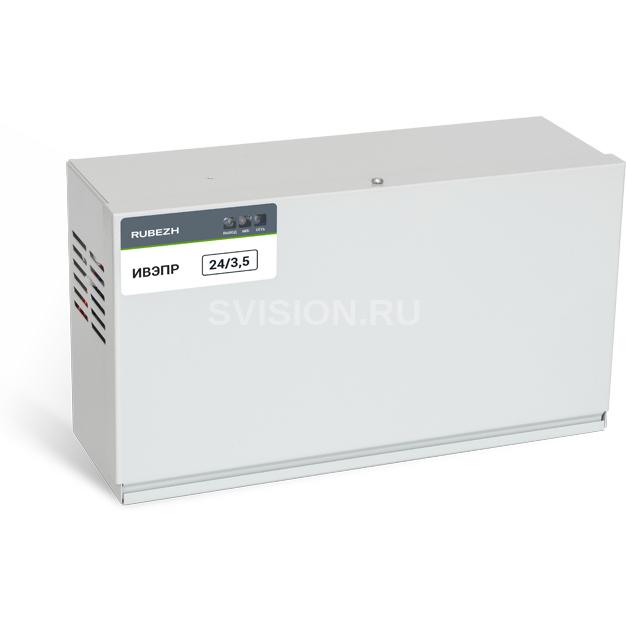 Источник питания ИВЭПР 24/3,5 выполнен в металлическом корпусе с возможностью установки двух 12-вольтовых АКБ (соединяемых последовательно). Отличается высокой надёжностью, широким диапазоном сетевого напряжения 140 В - 265 В, температурным диапазоном от -10 ºС до +50 ºС и пониженным уровнем высокочастотных помех.