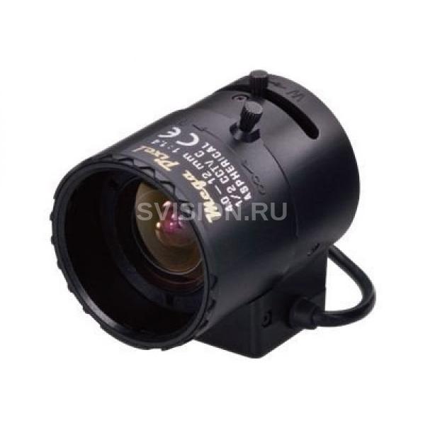 Tamron M12VG412 - мегапиксельный объектив с автоматической регулировкой диафрагмы (АРД), формат объектива 1/2", управление диафрагмой при помощи постоянного тока (DC), фокусное расстояние - 4.0-12.0 мм, угол обзора 93.6°-29.5°, асферика, апертура F1.4-360, тип крепления C.