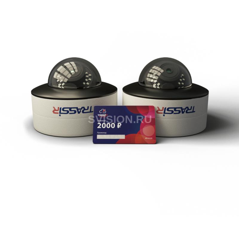 Комплект облачного видеонаблюдения TRASSIR CloudStreet состоит из двух IP-камер TRASSIR TR-W2D5 (2.8 мм) и промокода на 2000 рублей для активации в личном кабинете TRASSIR Cloud. 2000 р. — это 6 месяцев записи архива в облако, настройка тревожных уведомлений о движении, звуке и сигналах встроенного детектора саботажа, экспорт видео, расширенный функционал управления камерой. Промокод доступен только физическим лицам.