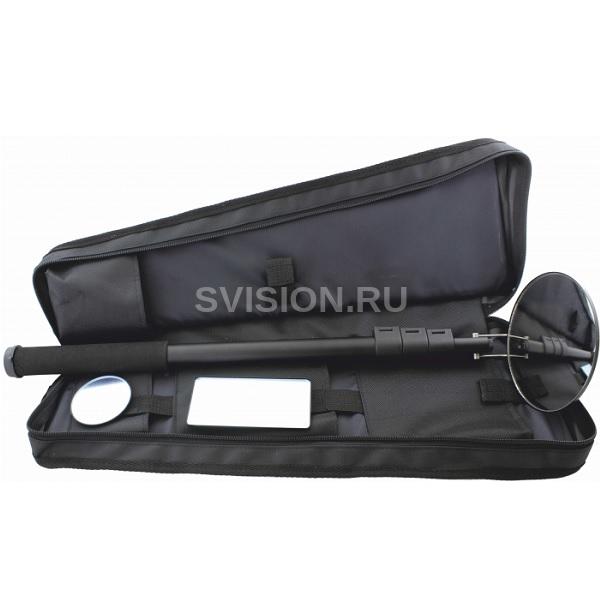 Визор-01 - профессиональное оборудование для досмотра труднодоступных и слабоосвещенных мест. Представляет собой телескопическую штангу, выдвигающуюся до 175 см, на конце которой размещено стеклянное зеркало. В комплекте поставляются зеркала большого и малого диаметра, а также прямоугольной формы. Вес товара: 1700 г. Габариты (ДxШxВ): 580 x 200 x 80 мм.