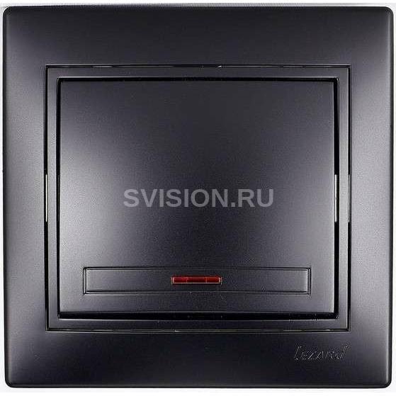Описание Выключатель 1-кл. 1п СП Мира 10А IP20 с подсветкой со вставкой черн. бархат LEZARD 701-4242-111