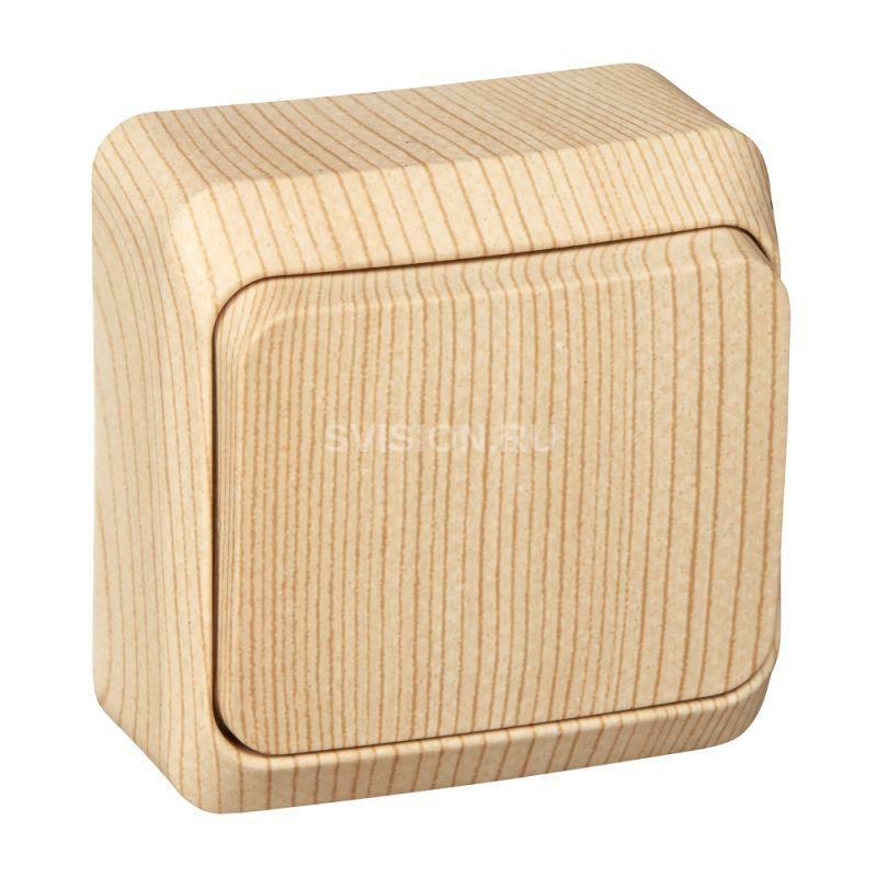 Описание Выключатель 1-кл. ОП Этюд Дача 10А IP20 сосна SE BA10-001D