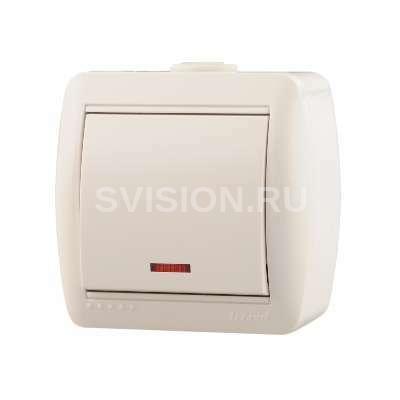 Описание Выключатель 1-кл. ОП Ната 10А IP20 с подсветкой бел. LEZARD 710-0200-111