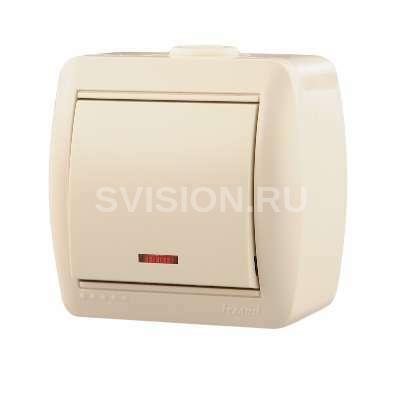Описание Выключатель 1-кл. ОП Ната 10А IP20 с подсветкой крем. LEZARD 710-0300-111