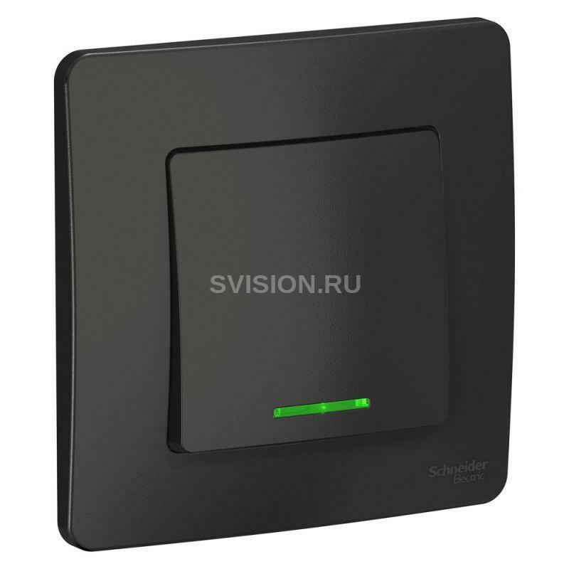 Описание Выключатель 1-кл. СП Blanca 10А IP20 (сх. 1) 250В с подсветкой антрацит SE BLNVS010116