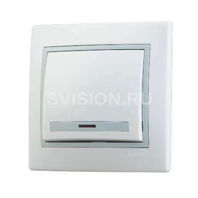 Описание Выключатель 1-кл. СП Мира 10А IP20 с подсветкой с сер. вставкой бел. LEZARD 701-0215-111