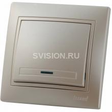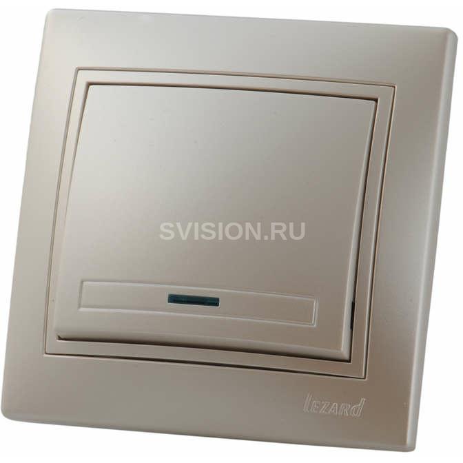 Описание Выключатель 1-кл. СП Мира 10А IP20 с подсветкой со вставкой жемчуж./бел. перламутр. LEZARD 701-3030-111