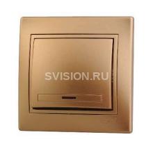 Описание Выключатель 1-кл. СП Мира 10А IP20 с подсветкой со вставкой зол. метал. LEZARD 701-1313-111
